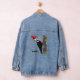 Cue funny Pileated woodpecker cartoon illustration Denim Jacket