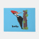 Cue funny Pileated woodpecker cartoon illustration Doormat