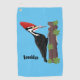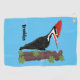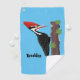 Cue funny Pileated woodpecker cartoon illustration Golf Towel