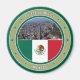 A photo of Mexico City and the national flag of Mexico, share the inner circle of which they are both infused in to. The colours of the badge are representative of Mexico and are joined by text and decorative stars.