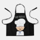 Become a french chef with this cartoon dressed as culinary french cook wearing a curly moustache. Dressed in a white uniform, blue neckerchief, and a toque blanche. Black background with white, customisable name at top.