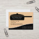 Modern culinary school business cards with image of a cooking pot, text space you can personalise to suit your business or profession, and lots of room for company information and contact info. Designed for a cooking school, culinary class, or chef school.