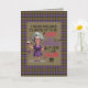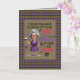 An humorous birthday card for a female, on the background of the Culloden Ancient Scottish Tartan.