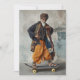 An elderly man embraces modernity with flair, balancing on a skateboard while dressed in vibrant, traditional Indian attire. His outfit features a colourful turban, layered scarves, and flowing orange dhoti pants, blending heritage with contemporary elements. His pose and confident expression add to the juxtaposition of old and new, making a bold statement of style and individuality.