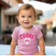 A pink bodysuit, graced with an endearing font that reads "Cuore Mio" (My Heart) and features a sweet white heart design, along with space beneath for personalisation, represents a deeply meaningful gift for an Italian baby girl. "Cuore Mio" is a cherished Italian expression conveying profound affection, where the heart symbolises love. This bodysuit not only celebrates the special connection between parent and child but also introduces Italian language and culture at an early stage, making it both a heartwarming and educational gift that enriches a young one's wardrobe with a delightful touch of cultural heritage.