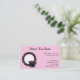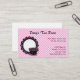 This cute business card is great for any coffee or tea business. It has a pink, black, and white tea cup and saucer on the left side. The background is pink and white checks. All text is customisable in pink for your business!