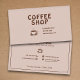 A brown tones business card with an illustration of a coffee cup, for coffee shop, bar, restaurant, coffee roaster, tea shop, etc. It comes with customisable information decorated by icons and opening hours!