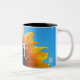Coffee Mug with photo, Initial and Name. The background in this image is a yellow sunflower with a blue sky - the matching accessories that are sold separately display more of the photo, however this mug matches nicely as it provides a gentle colour backdrop for your name. Fonts and font colours can be changed. Matching decorative office accessories are sold separately. Design HAMbyWhiteGlove aka HAMbWG.