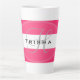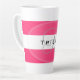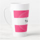 Pink and white stripe Latte or Coffee Mug with your name in black and initial in grey. Design HAMbyWhiteGlove aka HAMbWG
