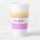 Yellow, Pink and white striped coffee mug with your name in black and initial in grey. Design HAMbyWhiteGlove aka HAMbWG