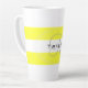 Yellow and white striped coffee mug with your name in black and initial in grey. Design HAMbyWhiteGlove aka HAMbWG