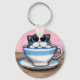 Whimsical black cat keychain. This itty bitty kitty is looking for a new home... he's starting to outgrow his teacup! Original artwork: acrylic on watercolor paper © 2008 Lisa Marie Robinson