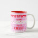 This festive and girly design features the words 'Your Name's Cup of Cheer' within a Christmas sweater design that has a colour palette of pink, red and white and features bows, reindeers, snowflakes and berries and holly. You can customise all the text. See the whole matching collection.