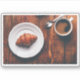 Cup of Coffee And Croissant on Rustic Table. View from Above