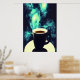 A cup of coffee in a black cup with the space in the background. This is a AI generated art.