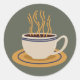Green and Yellow Cup of Coffee Simplified Illustration Circle Laptop Sticker