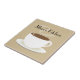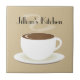 A tile featuring an illustration of a cup of coffee on a saucer. Personalise with your name.