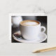 cup of coffee latte on table, close-up postcard