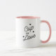 Trendy, stylish, funny coffee mug saying "Cup of Love" in modern typography with whimsical heart illustrations on the two-toned coffee mug. Perfect sweet valentine's gift for your bestie or girl-friend. Available in many more interior colours.