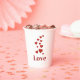 White paper cup. "LOVE" with hearts.