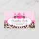 © 2012 Socialite Designs Inc. Whimsical bakery business card design has our cupcake and cake pops design elements with polka-dot and zebra stripes background. A cute polka-dot ribbon on the front and back. All designs are copyright protected under copyright laws. Most of our designs are created by Socialite Designs and are protected by Copyright and cannot copied, scanned, derivatives made of, altered, duplicated, photographed, screen shots taken, or stolen on the web where the designs are showcased. Our designs are only sold on Zazzle. If you find one of our designs, or a derivative of one of our designs being used unlawfully on the web, please contact us. Downloading, saving or reselling of copyrighted materials is prohibited and will result in a lawsuit. Scanning any printed material that you purchased through Zazzle is prohibited.