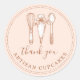 Artisan cupcake bakery thank you labels, featuring delicate baking utensil illustrations of a whisk, piping bag, and spoon arranged above a soft peach blush background with a dotted pastry style border. The warm handcrafted design creates a charming bakery packaging seal that works beautifully on cupcake boxes, pastry boxes, bakery bags, and treat packaging. Elegant script lettering paired with classic serif typography gives these labels a friendly handmade feel that suits cupcake bakers, cottage bakeries, pastry chefs, and small dessert businesses who want packaging that feels warm, personal, and memorable.