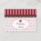 Pink and brown candy coloured stripes, chocolate dots, and scallops give this cupcake business card retro style. Use this business card for a bakery, boutique, shop, catering, etc...Customise the information to suit your needs, add or delete text, etc. The designs are from original art.