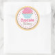 A cute sticker on a circle background with a vanilla cupcake and pink icing. Customizable with your text however you want to use it . . . whether it may be with your bakery name, labeling your cupcake packaging or even editing the text to say "Thank You" for customers that support your bakery.