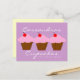 Very cute and pretty postcard for a bakery or cupcake maker! Three chocolate cupcakes with pink frosting and a cherry on top! Your business name and information is personalised by you! Use this postcard for business promotions or grand opening announcement.