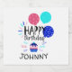 A fun and colourful design on a birthday party theme with balloons, cake and streamers. The words “Happy Birthday” are printed in black in a handwritten style. Ideal for celebrating the birthday of your loved one, young or old, male or female.
