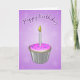 Sweet birthday card featuring a vanilla cupcake with strawberry frosting and blue sprinkles for fun all wrapped up in a fancy foil wrapper. Inside text is customisable. Original © Marianne Gilliand 3d and 2d digital artwork. Matching stickers available.