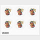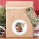 Round sticker is shown with a cute cupcake birthday pirate print.