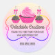 © 2021 Socialite Designs Inc.  Elegant and colourful bakery packaging seal has a cupcake and cakepop design, and a doodle banner frame.  The background has colourful rainbow pattern.  Use these stickers to seal your baked goods boxes or pouches.