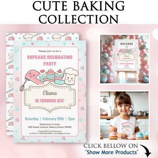 Cupcake Decorating Girl Baking Party Birthday Banner