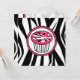 A fashion birthday invitation featuring a zebra print and pink cupcake inside a hot pink circle shaped frame outlined in black. Black and white zebra print background. Opposite side features matching zebra print background. Personalise the pink and black text with details of your occasion. Look for matching items in the "birthday shop" section of The Pink Schoolhouse store.