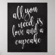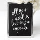 An elegant cutting edge wedding sign, features the text "All you need is love and a cupcake" in a extroverted script font, the brush texture adds a spontaneous and playful feeling. The background color can personalized according to your needs and preferences, please contact me if you have any special request.