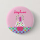 Cute and colourful button perfect for a girl's birthday party. Features a cupcake with the number 1 on top. Sweet design perfect for your little girl to wear at her party. Customise it with you child's name.