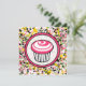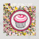 An invitation featuring a hot pink cupcake outlined in black inside a matching pink and black frame. Background is black, pink, yellow, and green paint splatters over white. Opposite side features matching paint splatter background with black and pink text over sheer side. Personalise with details of your event. Look for matching items in the "Birthday Shop" category of The Pink Schoolhouse store.