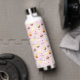 The bottle looks even better in real life. The ice cubes I put in lasts all day! I have my bottle with me all the time. It's summer and having something cold to drink feels amazing. With this bottle I always have something super cold. I have only tried the hot drink once and it lasted a long time as well. The color blue is a navy blue and the white printed on it is vibrant. It printed perfectly. I love my personalized smile water bottle.