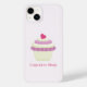 A pink phone case with a sweet pastel cupcake and a personalised text. A nice gift idea for a pastry chef, a cake business or just to a person who love cooking cakes!