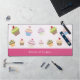 A pink Desk Mat with some cupcakes and a personalised forename and text. A nice gift idea for a pastry chef, or just a person who love cooking cakes!
