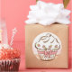 A cupcake with a pretty pink bow is the focal point of this sticker. From an original watercolor.