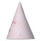 Celebrate your little one's first birthday in style with our customisable cupcake party paper hats. This charming design features sweets adorned with pink polka stripes on a white background. Whether it's a small gathering or a big celebration, this design sets the tone for a sweet and memorable party.