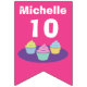 Cupcake theme kid's Birthday party custom Bunting Flags. Fun colourful design with name of child. Sweet treats baking celebration with children. Personalise with name and age.