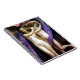 Cupid tenderly kissing Psyche on the cheek, his beautiful wings with purple feathers and gold quills wrapped around her. Pre-Raphaelite oil on canvas by English artist Annie Louisa Robinson Swynnerton entitled, "Cupid and Psyche", 1890.