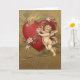 This Valentine's Day card shows a vintage-style cupid with soft golden curls and wide, gentle eyes, floating in front of a large deep red heart. His small wings are spread as if he’s hovering, and a gold arrow runs through the heart. Near the arrow, bright gold spark-like flames rise up and catch the light, giving the center a warm glow. The cupid holds a bunch of roses in light pink and dark red, with the stems and blooms resting across the heart. Behind everything is a rich gold background with faint old-fashioned patterns that make the scene feel classic and romantic. At the bottom, the words “To My Valentine” appear in shiny gold cursive lettering, set neatly under the picture. It’s a sweet, affectionate design that feels perfect for love or close friendship 💕❤️. Hope it helps you share your Valentine’s Day love in a simple, heartfelt way.