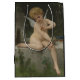 This design features a painting by the French artist William-Adolphe Bouguereau (1825–1905). It depicts Cupid, who is the ancient Roman god of desire, sensual love, attraction and affection. Cupid is the son of the love goddess Venus and the god of war Mars. The Greek counterpart to Cupid is Eros. The god is depicted here as a young boy with white wings and brown curly hair. A butterfly has landed on the boy's arm and he is gracefully removing it with his fingers. The bow and arrows that Cupid traditionally used to target lovers can be seen in the background. The boy is seated on a water fountain in a verdant garden where there are grass and plants and trees growing. The original artwork was painted by William-Adolphe Bouguereau in 1888.