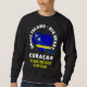 Stylish CURAÇAO Soccer Custom 2026 sweatshirt in BLACK with CUSTOMIZABLE TEXT. The words read SMALL ISLAND BIG HEART and the CUSTOMIZABLE TEXT reads THE NEW 2026 SOCCER GIANT-KILLERS. Design shows Curacaoan flag inside a heart, with the map outline of the island on top. Perfect CURAÇAO 'underdog' soccer sweater for wearing to Dutch, national and international soccer football matches to watch your favorite national team. Buy matching couple tees or matching group shirts for the family. Available in white.