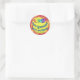 "Cure ignorance not autism" in blue text below a rainbow spectrum infinity ribbon in a yellow oval framed by orange and red.
