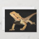 A curious bearded dragon looking forward in front of a black background.
